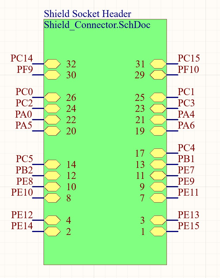 Analog IOs are not separately treated on the mainboard. Instead, all µC GPIOs with analog functions can be software-defined and used accordingly.