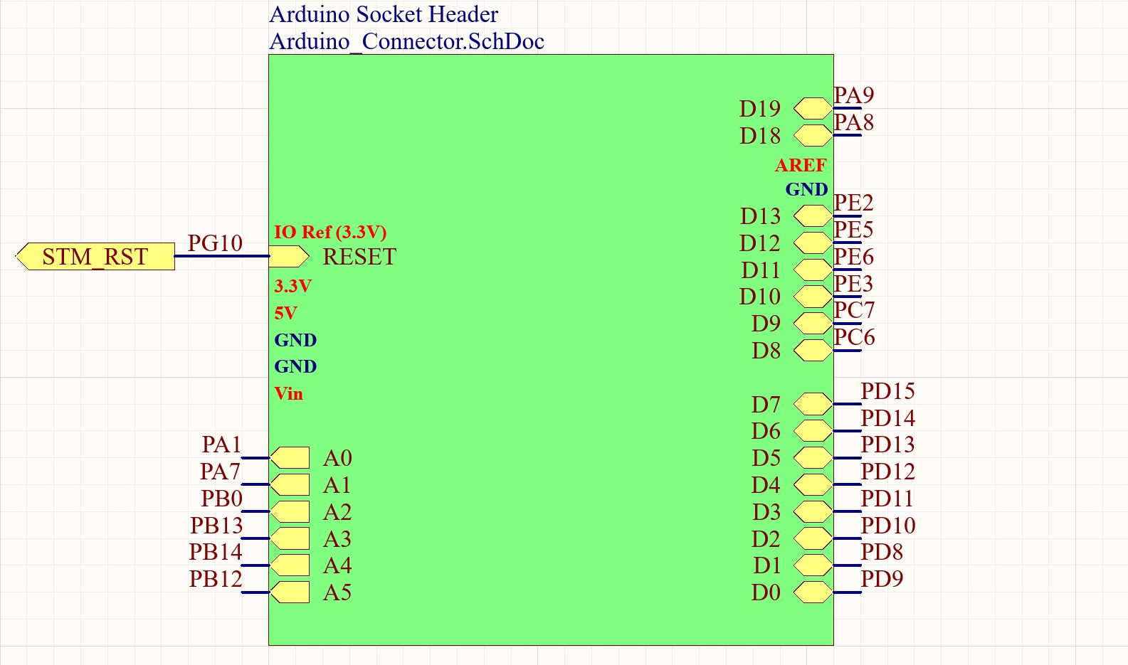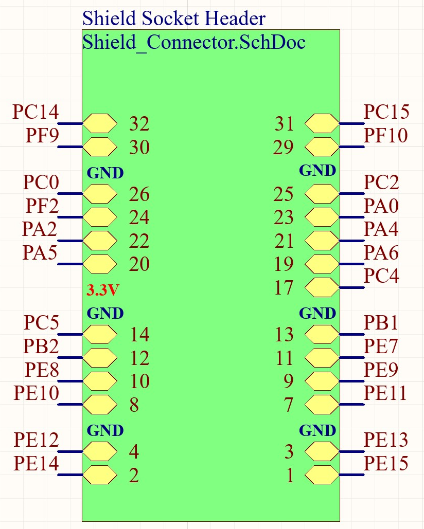 The mainboard IOs are 3.3 V or 5V tolerant. the 5V tolerant IOs show an extra “x“ as an indicator on the PCB silkscreen.