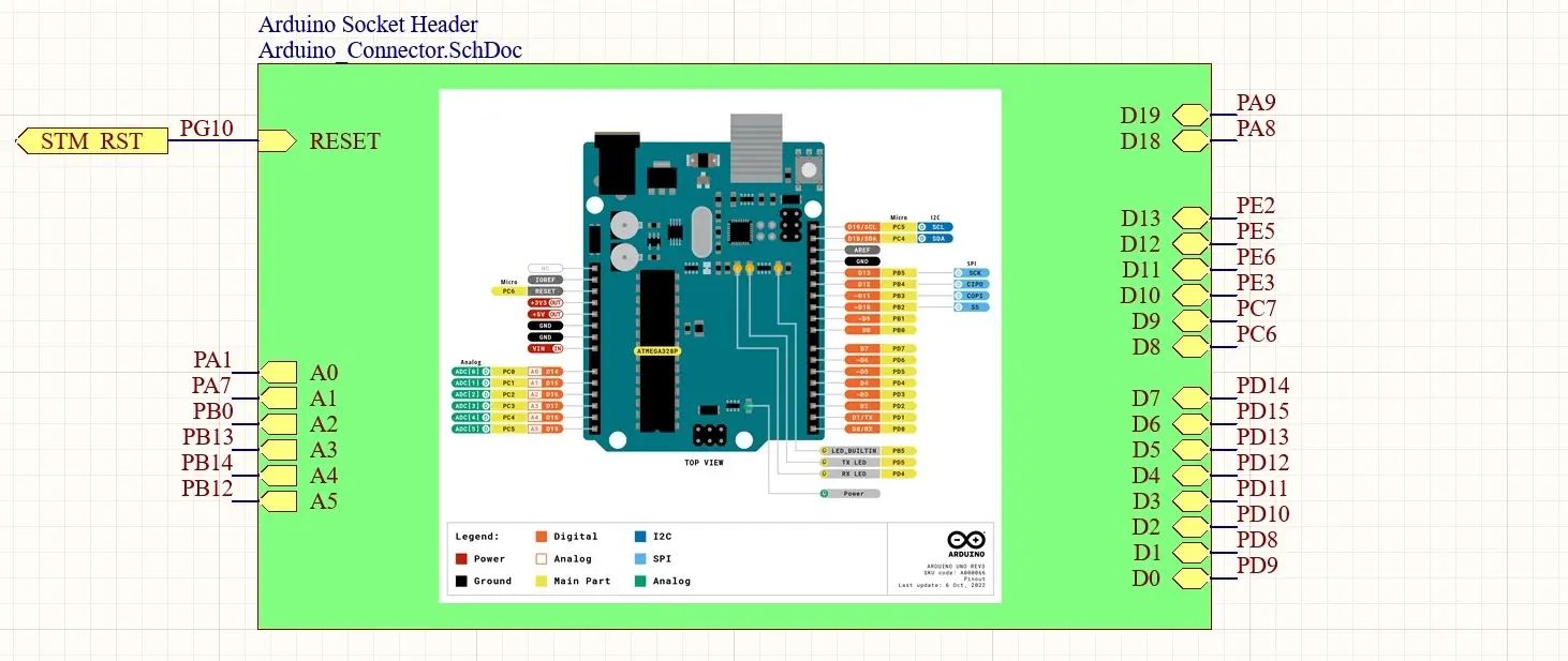 The GPIOs can be accessed via an Arduino-compatible pin header arrangement and an additional (non-Arduino-compatible) 32-pin header.
